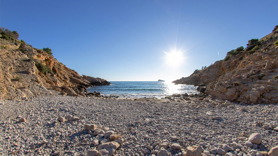 Sfeer: Wild, natuurlijk en intiem. Karakter: Verscholen aan de voet van het natuurpark Sierra Helada vormt deze baai het perfecte contrast met de grote zandstranden. Ze combineert fijn zand met rotsen en is daardoor een paradijs voor snorkelaars. De zeebodem is rijk aan posidonia-weiden en zeeleven.